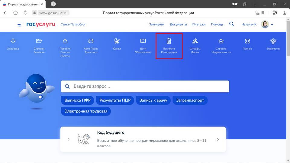 - Выберите раздел "Заграничный паспорт, визы"