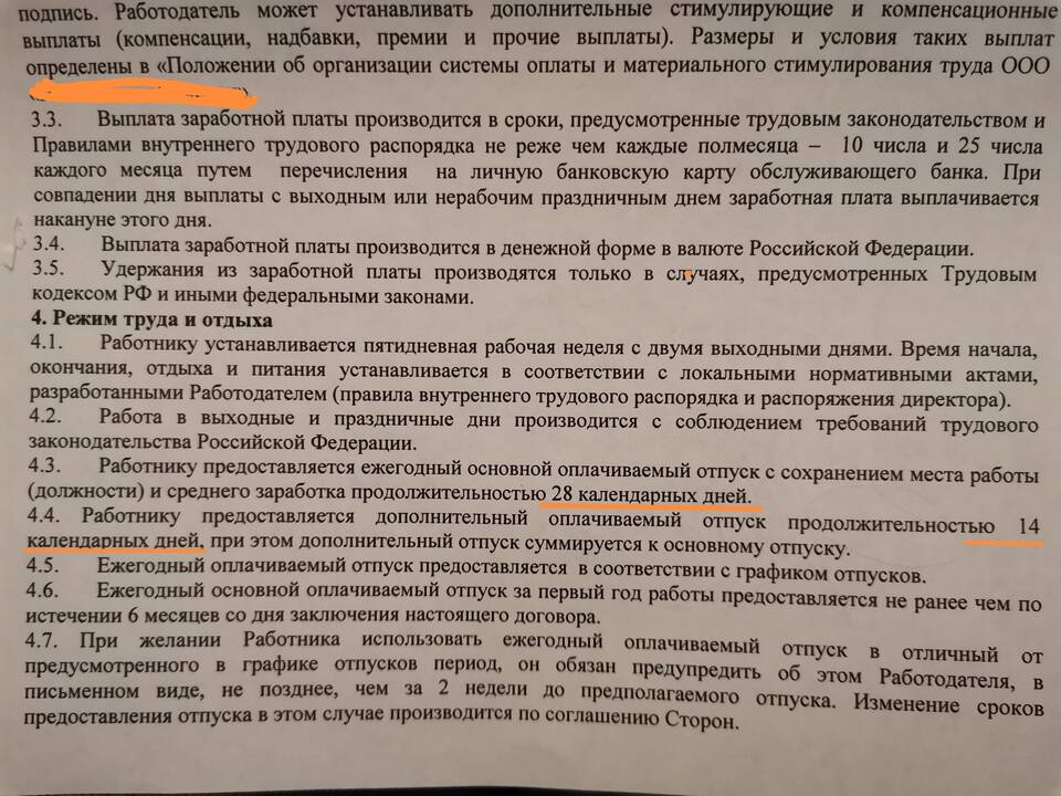 Обязательные условия трудового договора